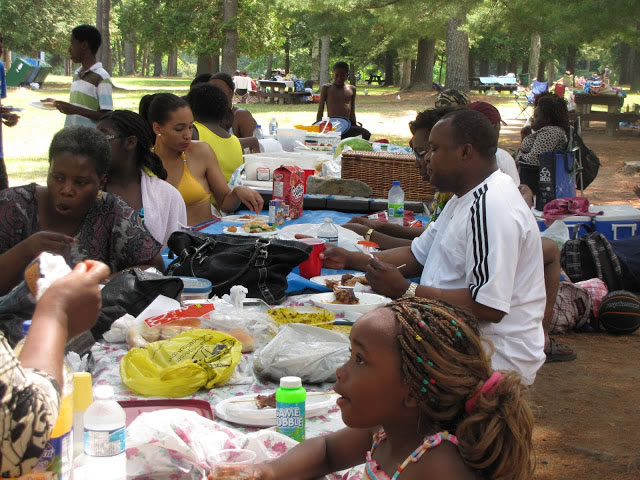 Cependant, nos activités de loisirs s’enchevêtrent autour de divers divertissements, allant d’une simple baignade, une randonnée pédestre ou d’un match de soccer improvisé. Une belle collation gastronomique agrémente l’évènement, un repas au style nord-américain où chaque convive est censé apporter un plat à partager avec le groupe, communément appelé « potluck parfois appelé « repas-partage », composé de buffet canadien/souper canadien, buffet africain et congolais, sans oublié d’une grande diversité de fruits et boissons gazeuses.